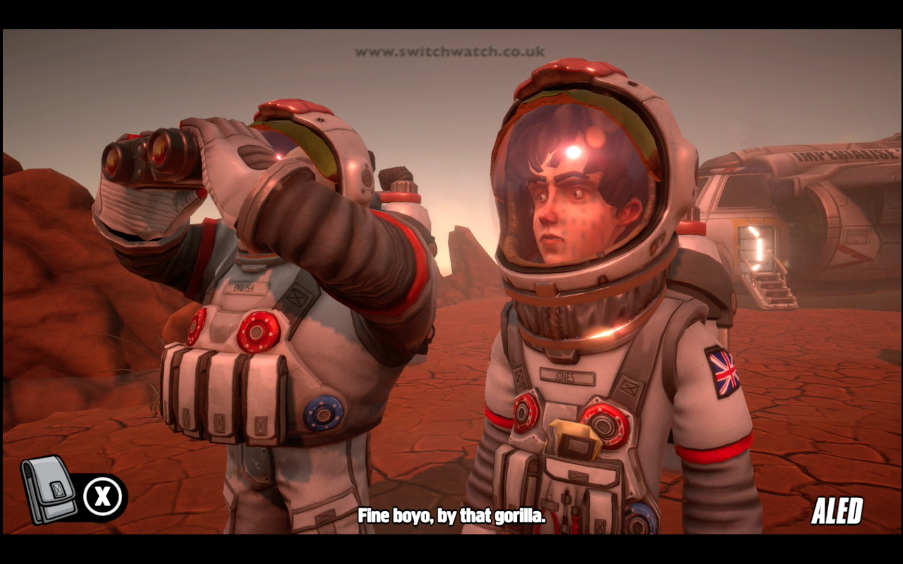 The meat of the gameplay is in solving ridiculous puzzles and situations with the tools you have in hand. It’s absolutely classic adventure gaming malarky. A very simple in-game example would be: Captain English wants to go down into the lower decks of the ship but, since the time between now and take-off, he’s piled on a few pounds and just can’t quite squeeze through the opening to the ladders. You need to find a way to solve this issue. The solution for this particular puzzle is by picking up some washing up liquid from the kitchen and smearing it on the manhole rim to give you extra lubrication. And I can’t believe I just wrote that.