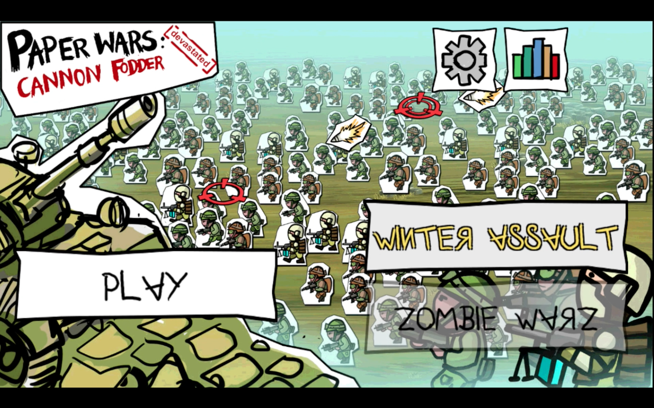 Visually the game has a cutout paper theme to it which I can always appreciate, there’s something rather tangible to how things look in this style, with Paper Mario being the primary example of course. In Paper Wars it looks fine with the doodle soldiers looking like they’ve been crudely ripped out of a book or something. I think the only problem I have with it is that it doesn’t really have any need to be paper-based since it’s not integrated into the gameplay or anything. There’s no gimmick or meaning to it being there aside from it just looking okay. Obviously being such a small, simple title it doesn’t really matter as much compared to if it was a larger, big budget game.
